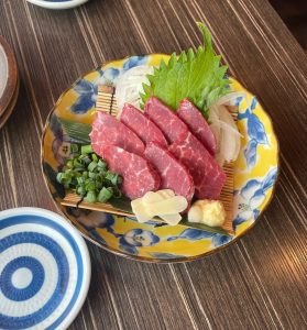 まずは熊本千興ファーム直送の新鮮な馬刺しを注文。赤身の甘みと薬味の相性が抜群でとても美味しかったです。